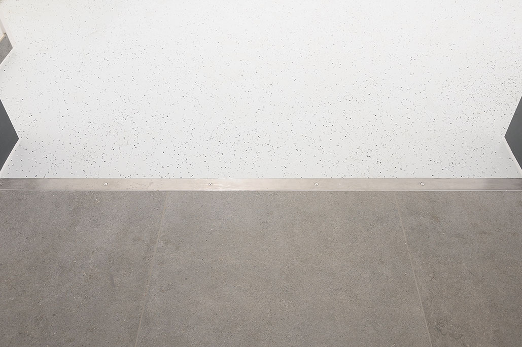 Die vorhandenen Fliesen wurden mit drei Strahlgängen für die Aufnahme des Bodenbeschichtungssystems vorbereitet. Vorhandene Hohlstellen wurden freigelegt und verspachtelt. Vorhandene Boden-, Rand- und Stützenfugen wurden freigelegt und in die Bodenbeschichtung elastisch übernommen.