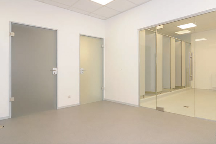 Die Sozialräume wurden entsprechend dem stetigen Personalaufbau und den aktuellen Anforderungen an Betriebsstätten neu gestaltet. In dem Bereich Umkleiden und Vorräume wurde ein dekorativer mehrlagiger Colorquarzbelag mit einer Mattversiegelung eingebaut. In den Duschen wurden die Boden- und Wandflächen inklusive einer alternativen Abdichtung mit einer Polyurethan-Beschichtung installiert.