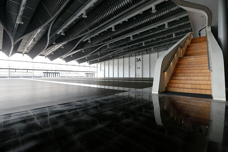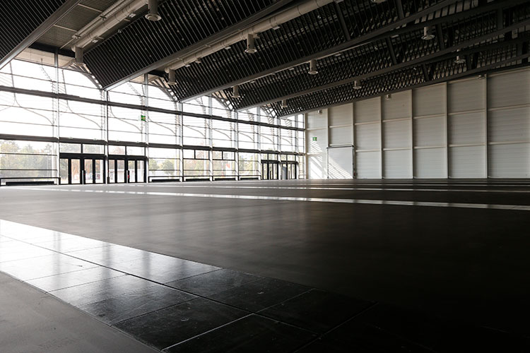 Knöller hat auf einen Gussasphaltestrich eine Polyurethanbeschichtung mit rutschhemmenden Eigenschaften eingebaut. Die Beschichtung im Farbton Asphalt-Natur wurde auf die höchsten Anforderungen einer Messe-/Ausstellungshalle abgestimmt. Für die Medienkanäle in der Halle wurden 5.500 Schwerlastplatten (0,40 × 0,55m) in der gleichen Farbe 3-fach versiegelt um eine einheitliche Optik in der gesamten Halle herzustellen.