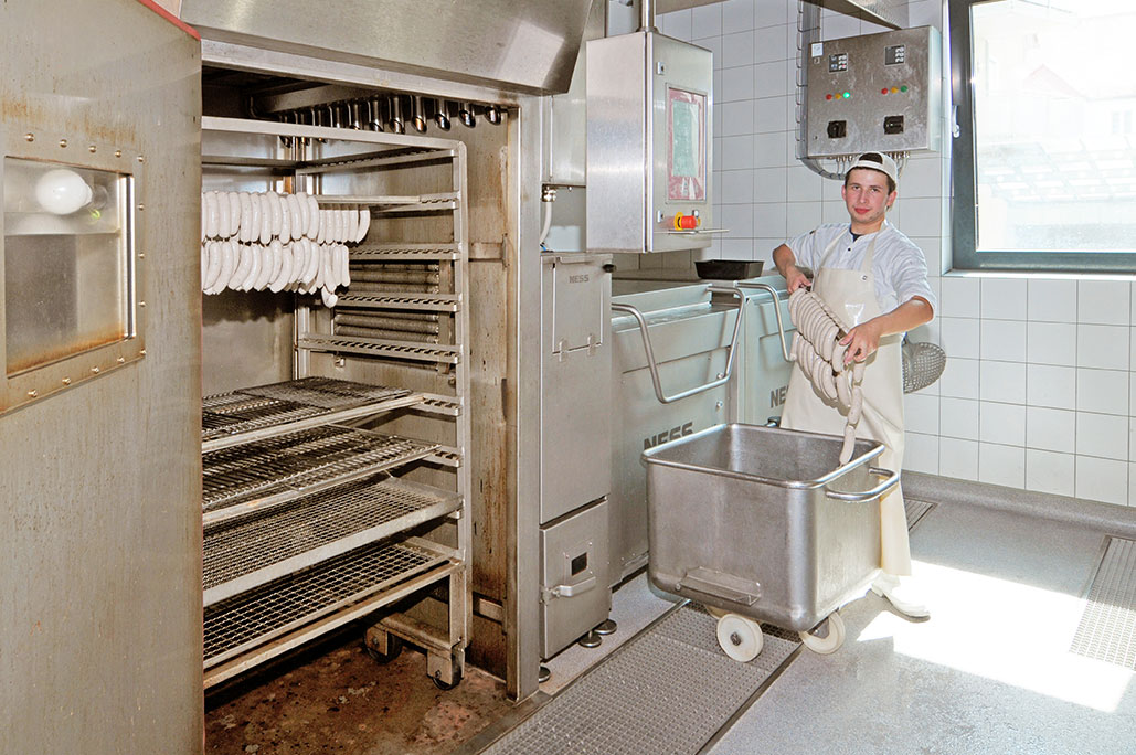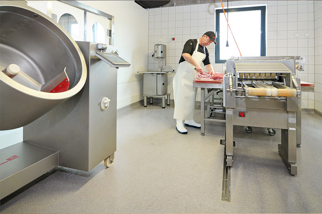 Knöller ist mit den Estrich-, Abdichtungs- und Beschichtungsarbeiten in der Produktion „Metzgerei“, Kühlräumen, Küchen und Lagerbereichen beauftragt worden. Ausgeführter Bodenaufbau: mechanische Untergrundvorbereitung zur Aufnahme eines Gefälleestrichs – Verlegung Wärmedämmung – fettsäurebeständige Abdichtungsbahn inklusive Hochzug – schwund- und spannungsarmer Schnellzementestrich SW1 zur Aufnahme der Lebensmittelbeschichtung inkl. alternativer Abdichtung – Einbau Edelstahlentwässerung – Betonieren der Gerätesockel – Verlegung des 7-lagigen Beschichtungssystems (ca. 8-10 mm).